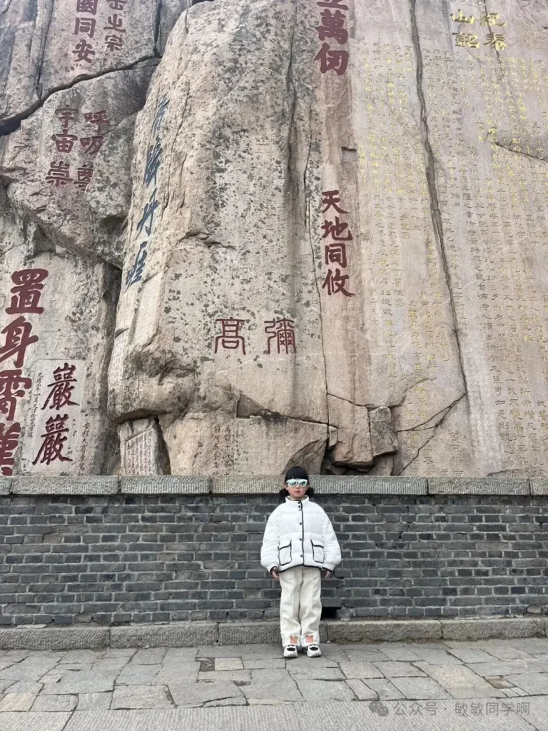 我們參觀了碧霞祠,仰望了歷經千年的摩崖石刻,就像是古人的”到此一游”。
