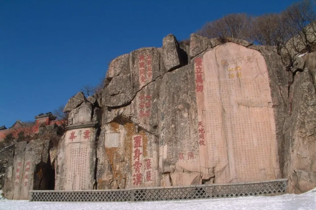 - 經石峪:從鬥母宮西行約 1 公里可達,這裡有著名的金剛經摩崖石刻,刻於面積約 2000 平方米的石坪上,字徑 50 厘米,筆力蒼勁,是泰山石刻的傑作,適合對石刻文化感興趣的遊客。