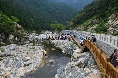 淌水濯足,清涼沁心。擊水嬉戲,笑語歡聲。揀大石而臥,幕天席地,峪中觀天,群山環抱,藍天白雲,宛如圖畫。