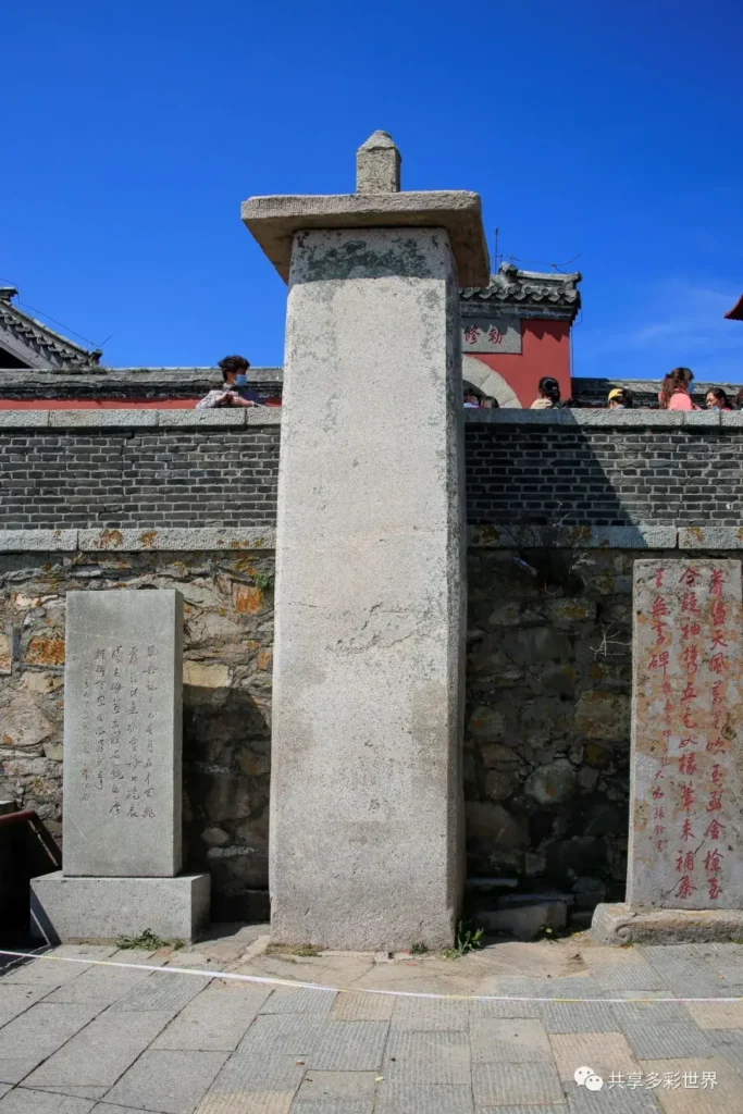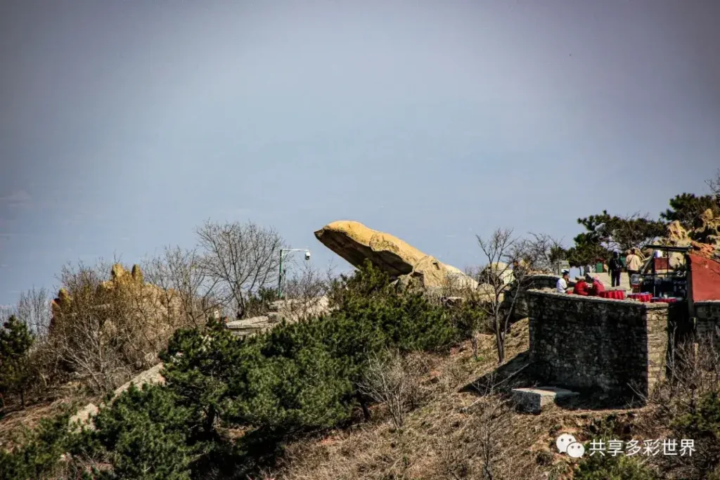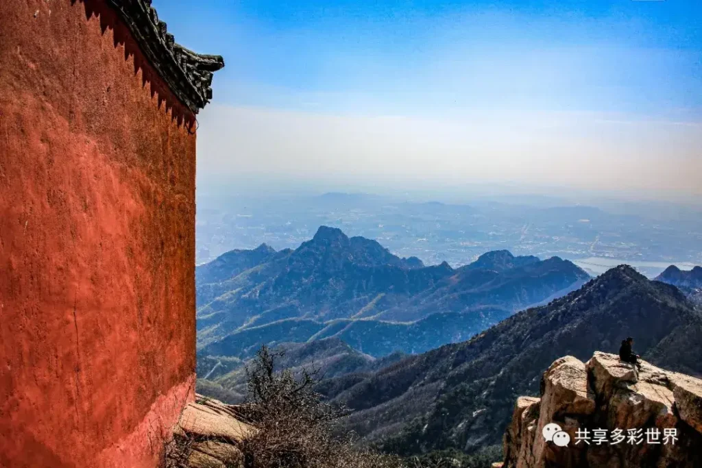 可以從寺院後的壹道小門穿出,來到圍墻外的山崖上,這裏也是俯瞰泰山風光的極佳地點,但有很多遊客不知道這壹訣竅。