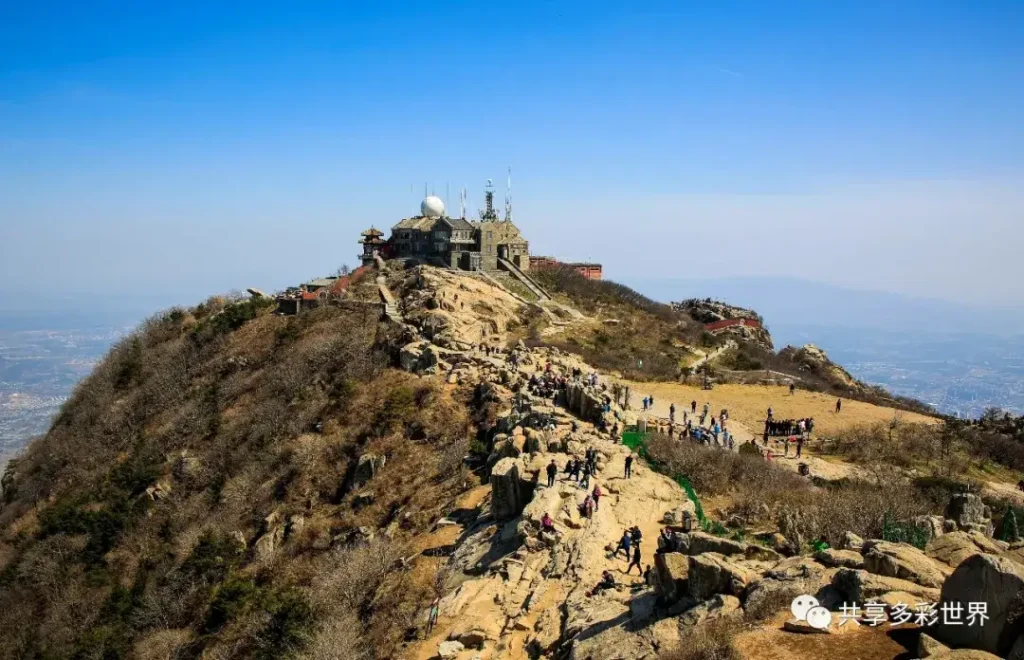 登泰山的終極目標當然是位於泰山之巔的玉皇頂。玉皇頂為泰山絕頂,海拔1545米,是五嶽之首泰山的主峰之巔,因峰頂有玉皇殿而得名。玉皇頂居於泰山之巔,氣勢雄偉,拔地而起,有“天下第壹山峰”之美譽。玉皇廟位於玉皇頂上,供奉的就是乃天地萬物的主宰,萬天帝主——玉皇上帝,乃掌管三界之主神。,主祀玉皇上帝。玉皇廟始建年代久遠無考,明成化年間重修。除祭殿玉皇殿外,主要建築還有迎旭亭、望河亭、東西配殿等。