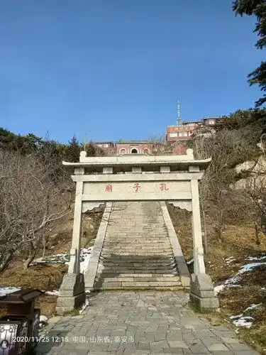 泰山孔子廟又稱文廟、至聖廟,坐落於泰山天街東端北側,振衣崗西北方向,處於南天門至玉皇頂的核心遊覽線上。作為全國名山中唯一的儒家廟宇,它背依蒼茫群山,面臨萬里雲霄,佔地約 16000 平方米,南北長約 150 米,東西寬約 100 米,雖規模不大卻氣韻沉厚,與泰山的雄偉氣勢相得益彰。