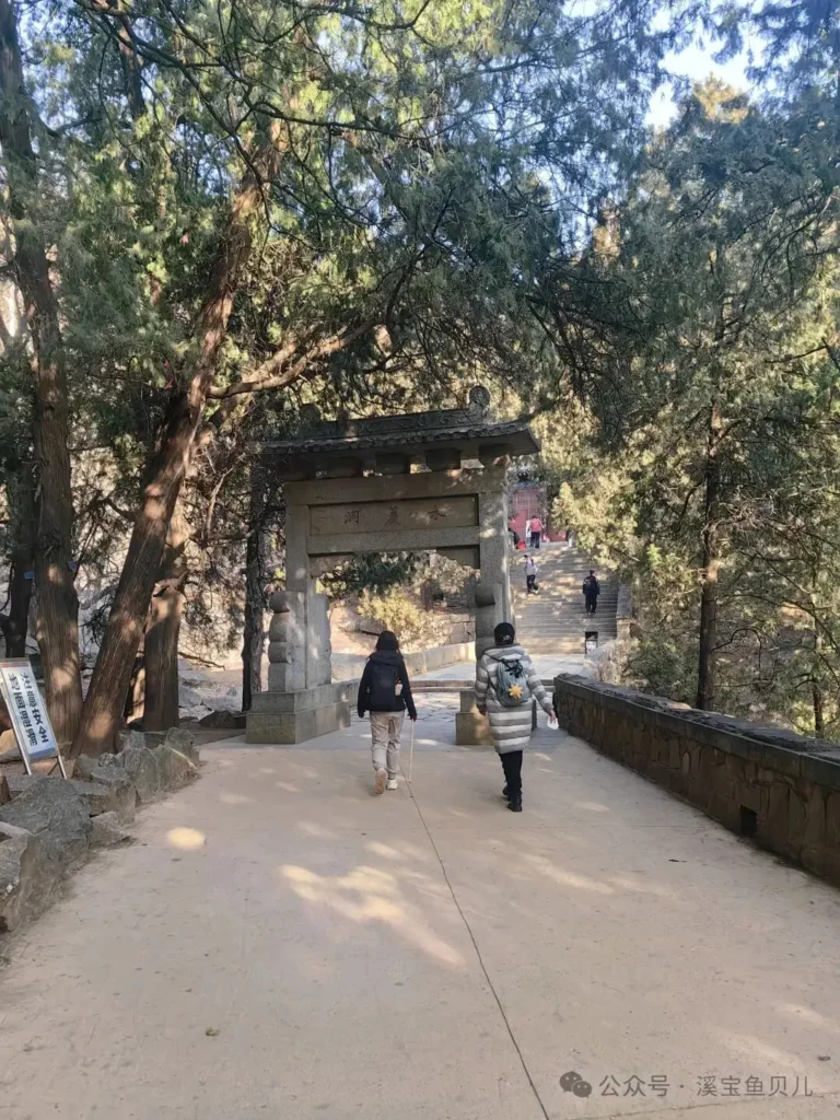 這一段,實話實說,風景並不驚豔。松樹、灰土、石階,走起來甚至有些單調。但你若走馬觀花,就錯過了真正的寶貝 —— 斗母宮、經石峪、壺天閣,都在這一段的兩側。尤其是經石峪,刻在石坡上的《金剛經》殘字,每個比臉還大,隋唐人的筆鋒,經了千年雨雪風霜還在。