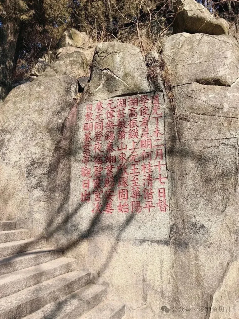 中天門是一個分界點。從這裡往前,路變得有趣起來。雲步橋懸在山澗上,水聲潺潺;五大夫松據說是秦始皇避雨處,真假不論,那幾棵松樹是真的好看。更重要的是,石刻開始密集了。泰山 7000 餘塊石刻,大部分集中在這一段及山頂。你可以放慢腳步,不必貪多,挑幾塊停下來細看。清人的 “天下名山第一”,明人的 “峻嶺”,還有無數無名者的留名 —— 開個玩笑,風景區內亂刻亂畫,是不是從這裡蔚然成風,收不住場的?