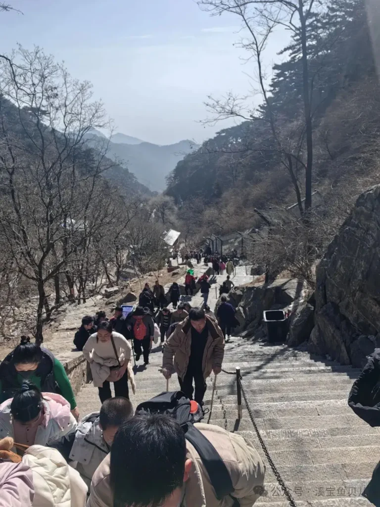 途中遇到一些下山的人,應該是夜爬泰山看日出返回的,統一化身看不出任何表演痕跡的瘸子。
