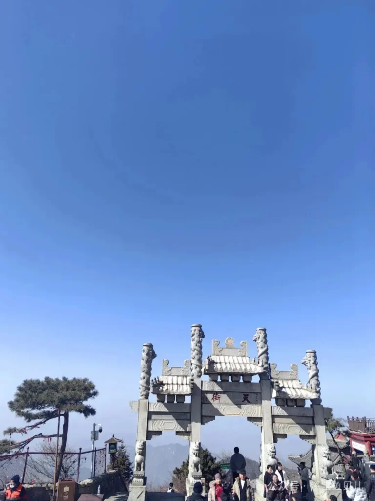 南天門終於到啦!它並不是山頂,卻是精神上的終點。那門洞看起來不大,甚至有些逼仄,但當你鑽進來,山風撲面,回望來路 —— 剛剛還壓在頭頂的雲,現在都在腳下了。這是整段登山路上最值得回首的時刻,在這裡回首,已是 “一覽眾山小” 了。