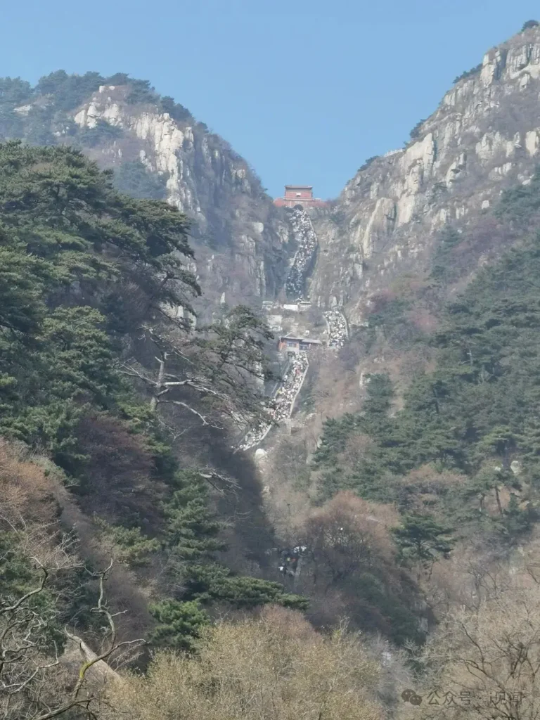 家庭與懶人首選,前段乘景區大巴直達中天門,避開一半陡峭山路,後段可選擇徒步或索道登頂。耗時:大巴 + 徒步 2-3.5 小時,大巴 + 索道約 1.5 小時(帶父母出行優選!)。