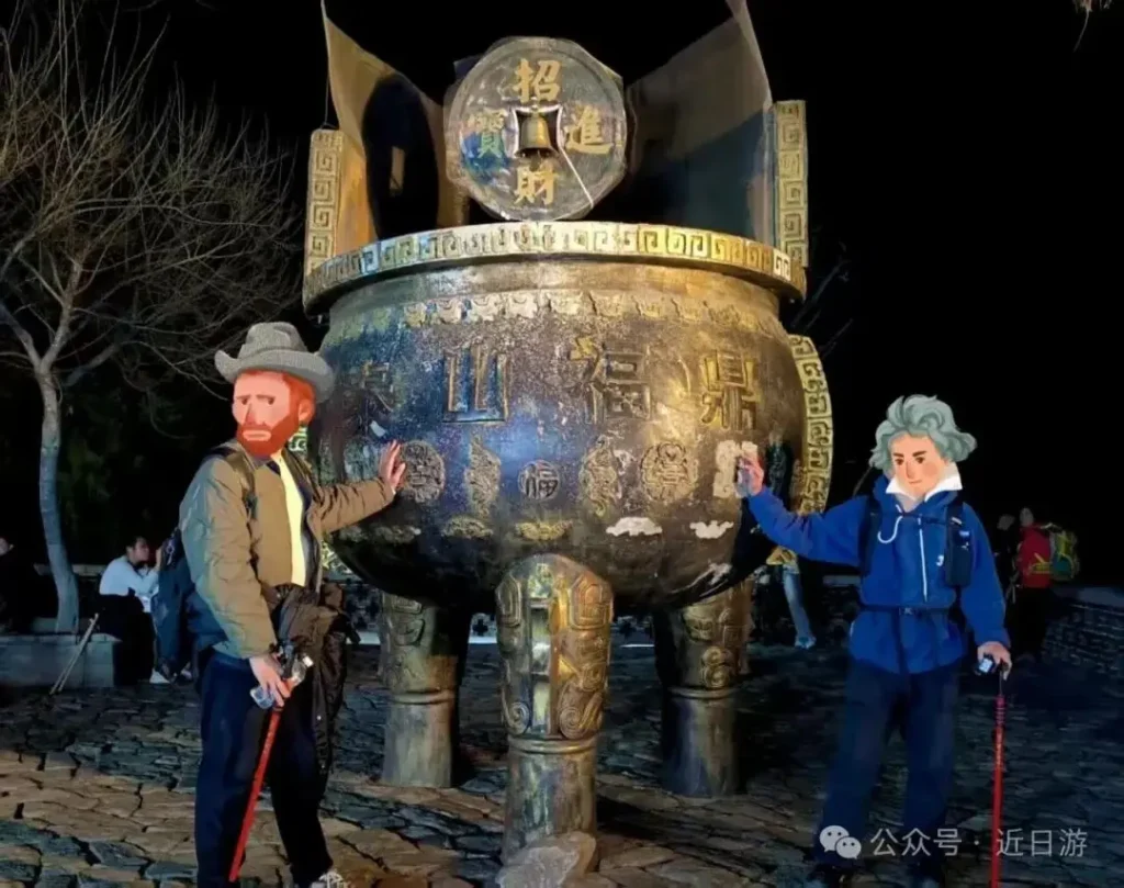 給大家說個夜爬泰山的教訓,無論是什麼,都不要買第一個攤位上的,第一個攤位絕對比後面貴。我們在火車站外買的登山杖五塊一根,在泰山腳下就變成了五塊兩根(不過我們的質量還挺好,爬完泰山也沒有一點損壞)。在山腳下買的祈福牌子,比半山腰上的貴了十塊錢。不過山下的大衣比山上便宜,但我覺得比起把大衣背上山再背下來,還不如到山頂多花那十塊錢。到館王在半山腰渴的不行了十塊錢買了三瓶水,結果再往上走十來米就有十塊錢四瓶的。哎,花錢買經驗與情緒價值這一塊。