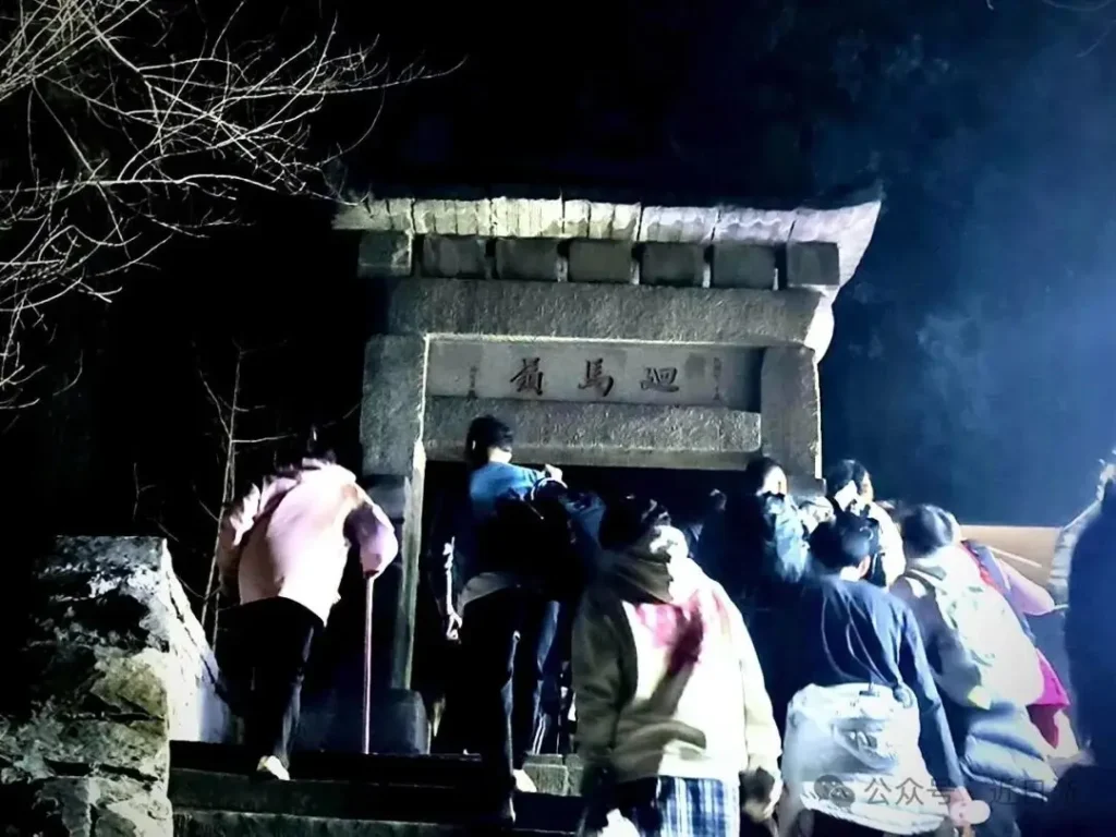 03 點 02 分,牌坊上的字模糊在霧裡,只能看出 “龍門” 兩個字。我知道最難的路從這裡才算真正開始。抬頭看,燈光零星撒在霧裡,看不清台階的盡頭。