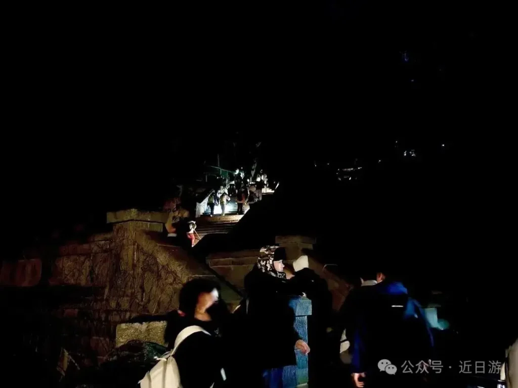 在 22 點 49 分通過萬仙樓檢票口,夜裡的山門比想象中熱鬧許多,人潮湧動、隨著石階向上延伸,隱沒在深沉的黑暗裡 —— 我甚至看不出那是山的影子還是凝固的夜色。三個人揹著包,舍長拿著手電。山下沒有風。“來都來了” 到館王開玩笑說 “明天下來跑個校園跑還能去圖書館。”“已經分不清是串還是真情流露了”“再串,打死” 我們都笑了。