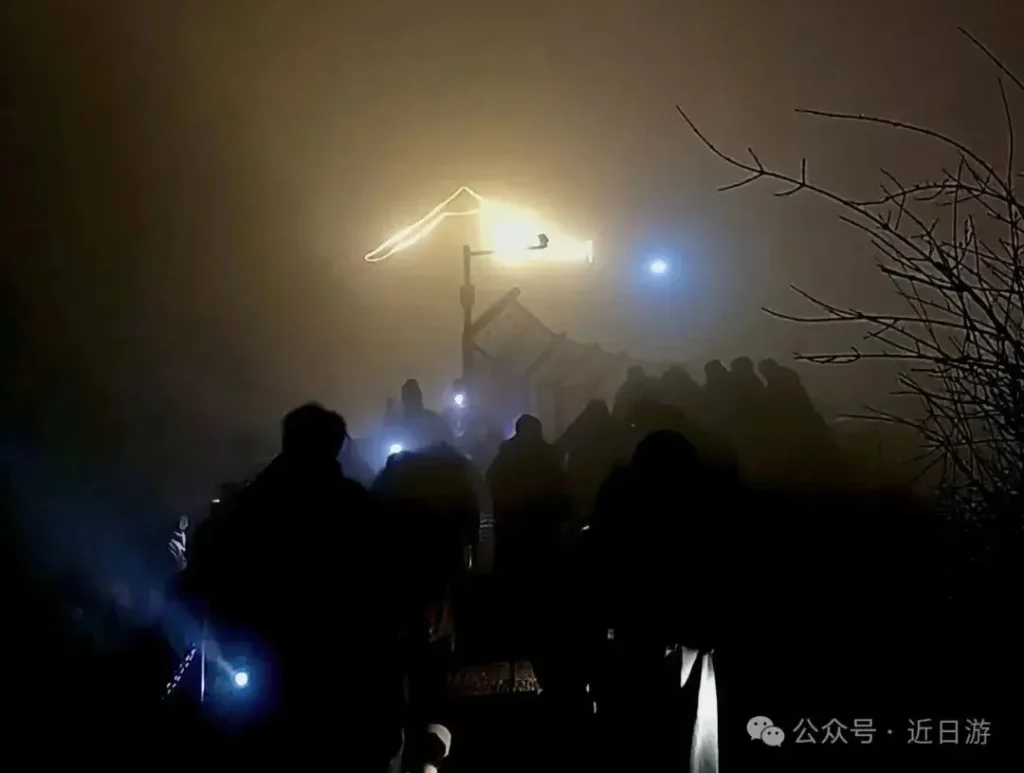 03 點 17 分,霧裡的人開始變得不真實。人影在光暈裡浮動,腳步緩慢,身體微微前傾。體力已經消耗的差不多了,沒有人說話,所有人都在往上走。那一刻忽然覺得,我們不是在爬山,是在朝聖。張衡在《四愁詩》中曾寫到:“我所思兮在太山。欲往從之梁父艱” 現在算是有出一點體味了。